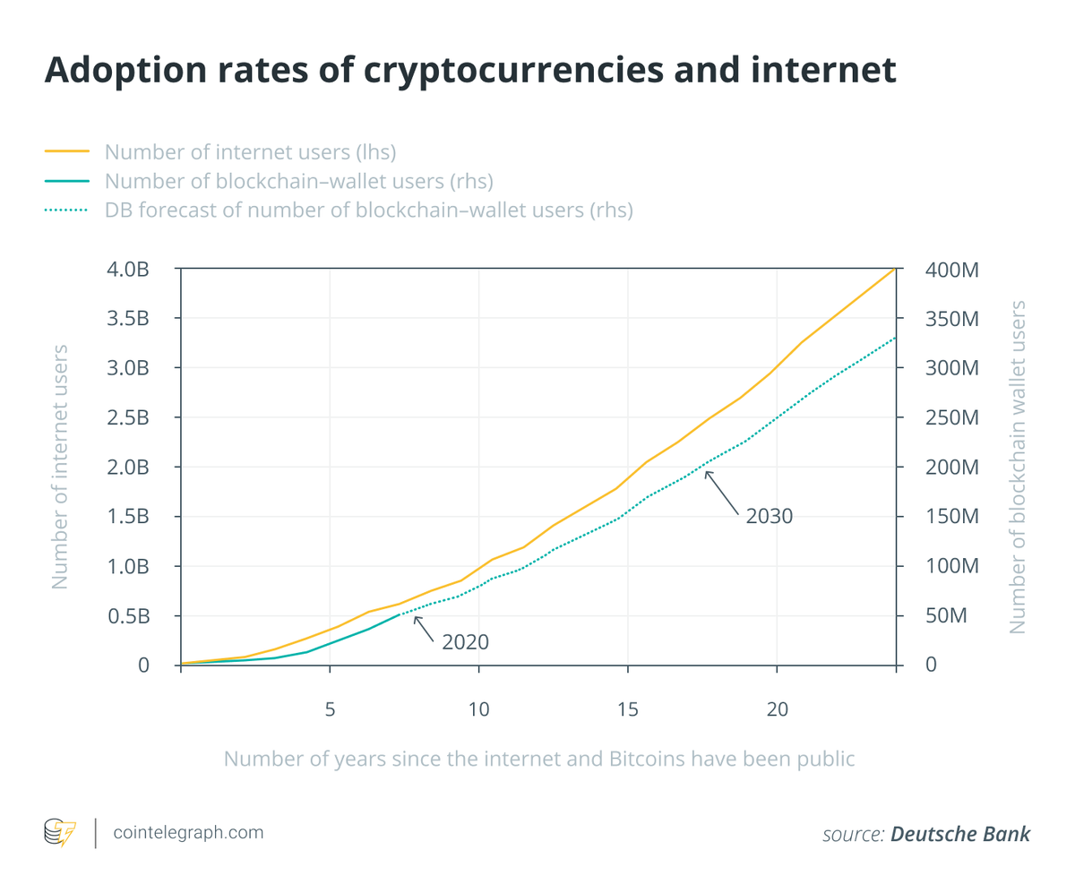 The exciting thing you can see from this chart is that that we're still in the early stages of adopting cryptocurrency. With every invention, such as the internet or even the microwave, adoption takes a while. There's a lot of factors including re-education, that needs to happen before majority of the world adopts. But the great news is cryptocurrency is still an infant; it's still ready for huge growth.